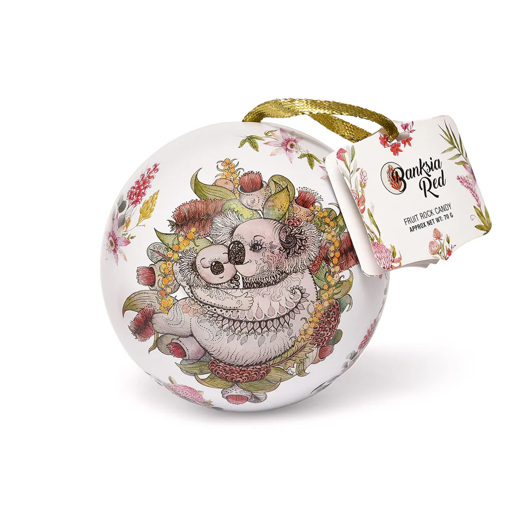 Banksia Red Christmas Koala & Kangaroo Set of 12 Bauble Tins - Rock Candy 70g