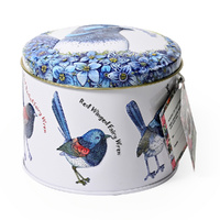 A Round Tin Embossed with Australian Wildlife artworks designed by Australian Artists