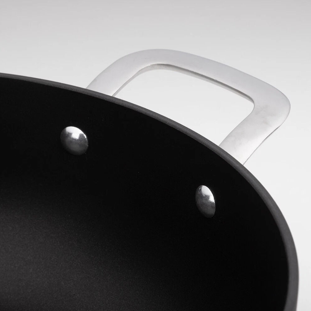 - Hard-anodised aluminium construction for rapid, even heating