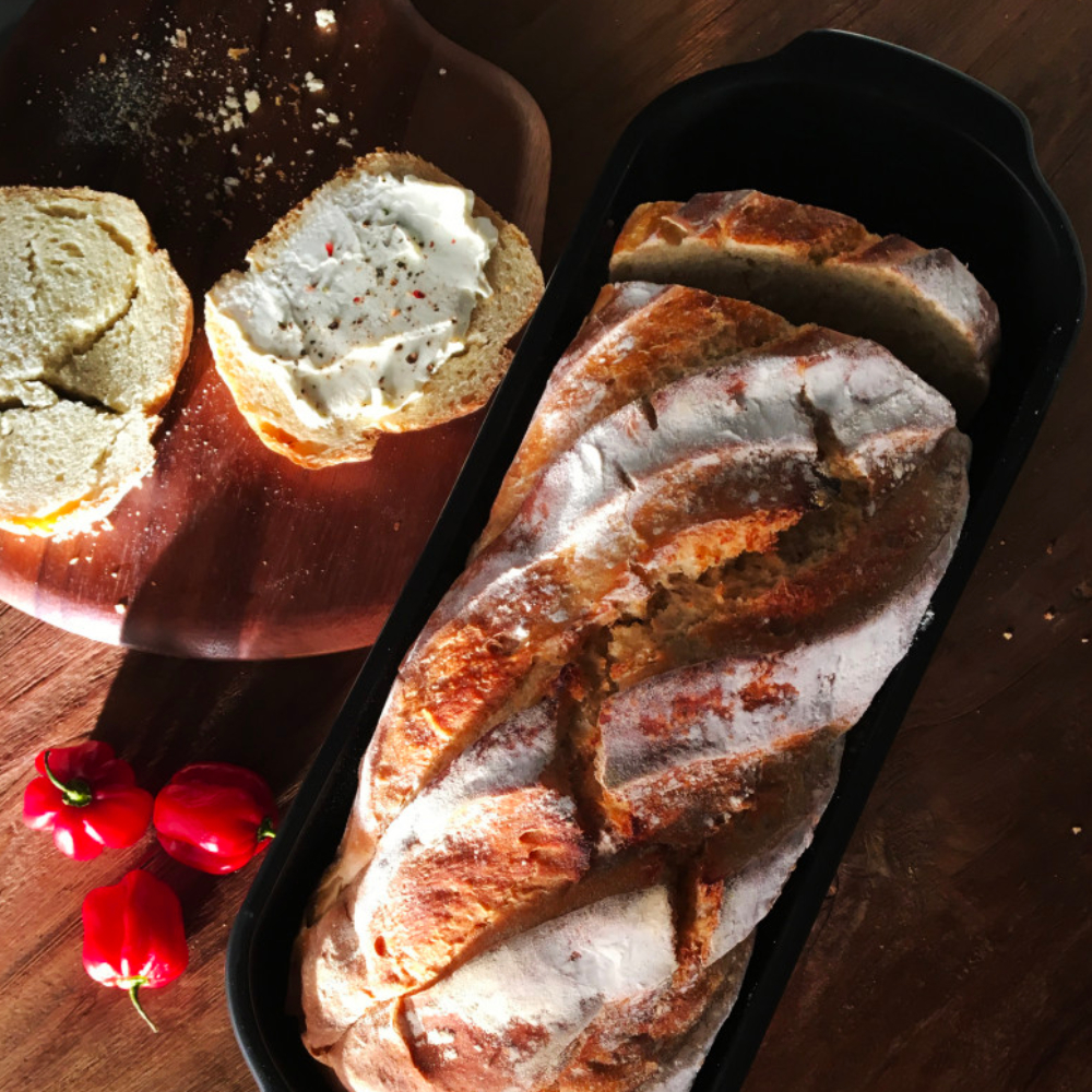 Thanks to its refractory ceramic, and to its lid, this bread baker diffuses heat evenly all around the dough and ensures just the right level of humidity during baking. Its deep bottom lets you bake traditional breads or gluten-free breads whose dough is wetter. Recreating conditions similar to those of a traditional baker’s oven, the Country Bread Baker helps you successfully make all your own breads: traditional, with seeds, with dried fruits, and more.