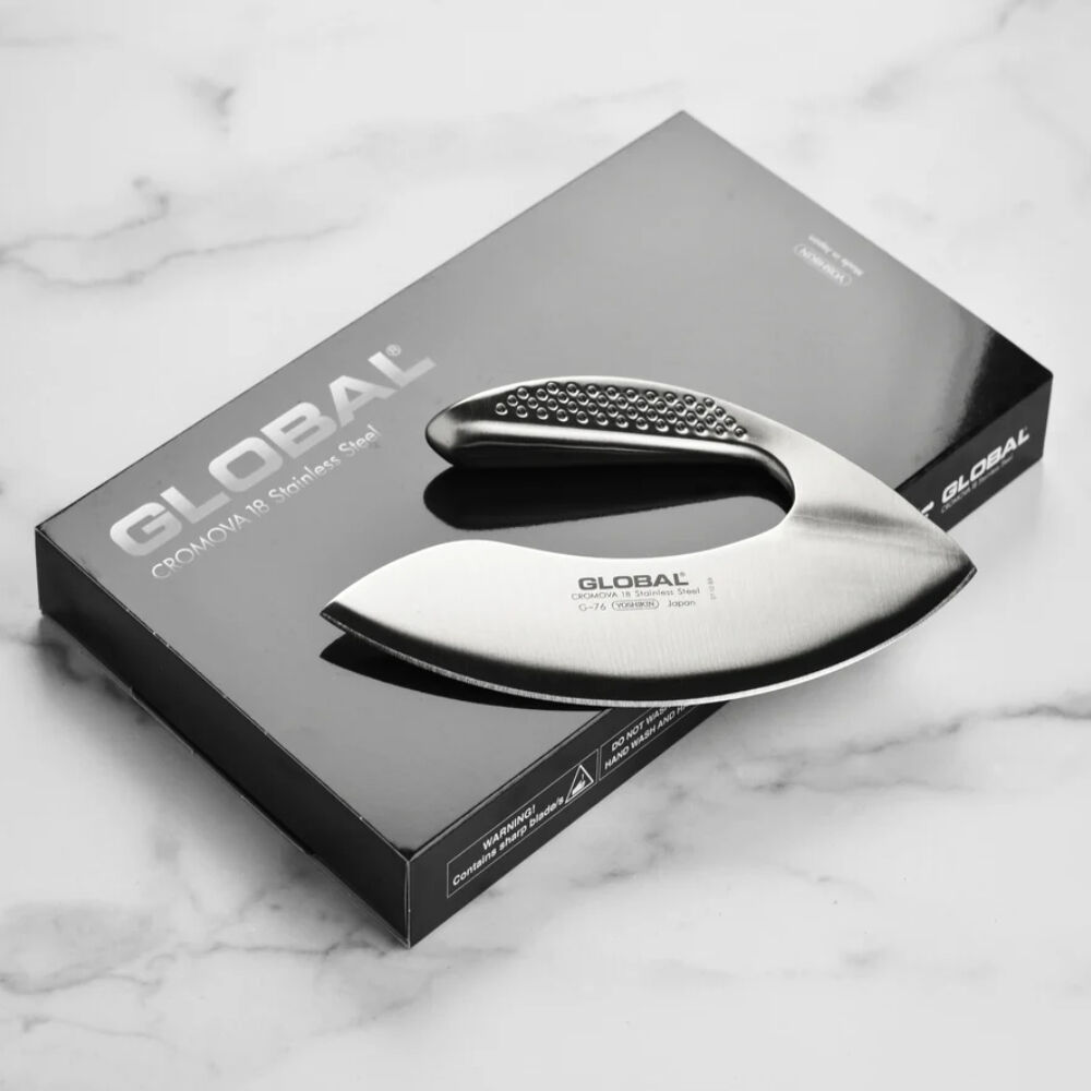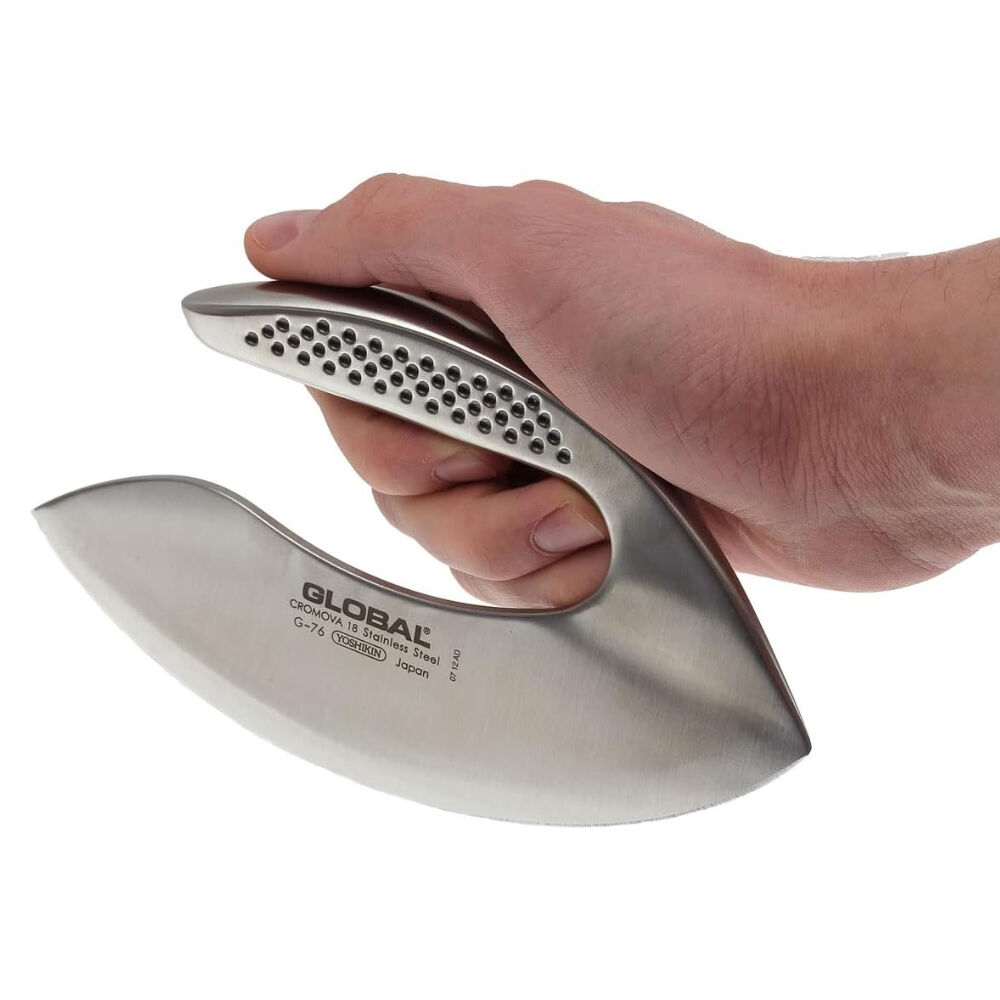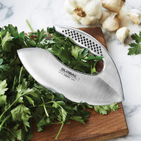 Effortlessly chop herbs, vegetables, and other ingredients with precision using the Global Classic G-76 Herb Chopper. Crafted from high-quality stainless steel, this professional kitchen tool ensures clean, uniform cuts every time.