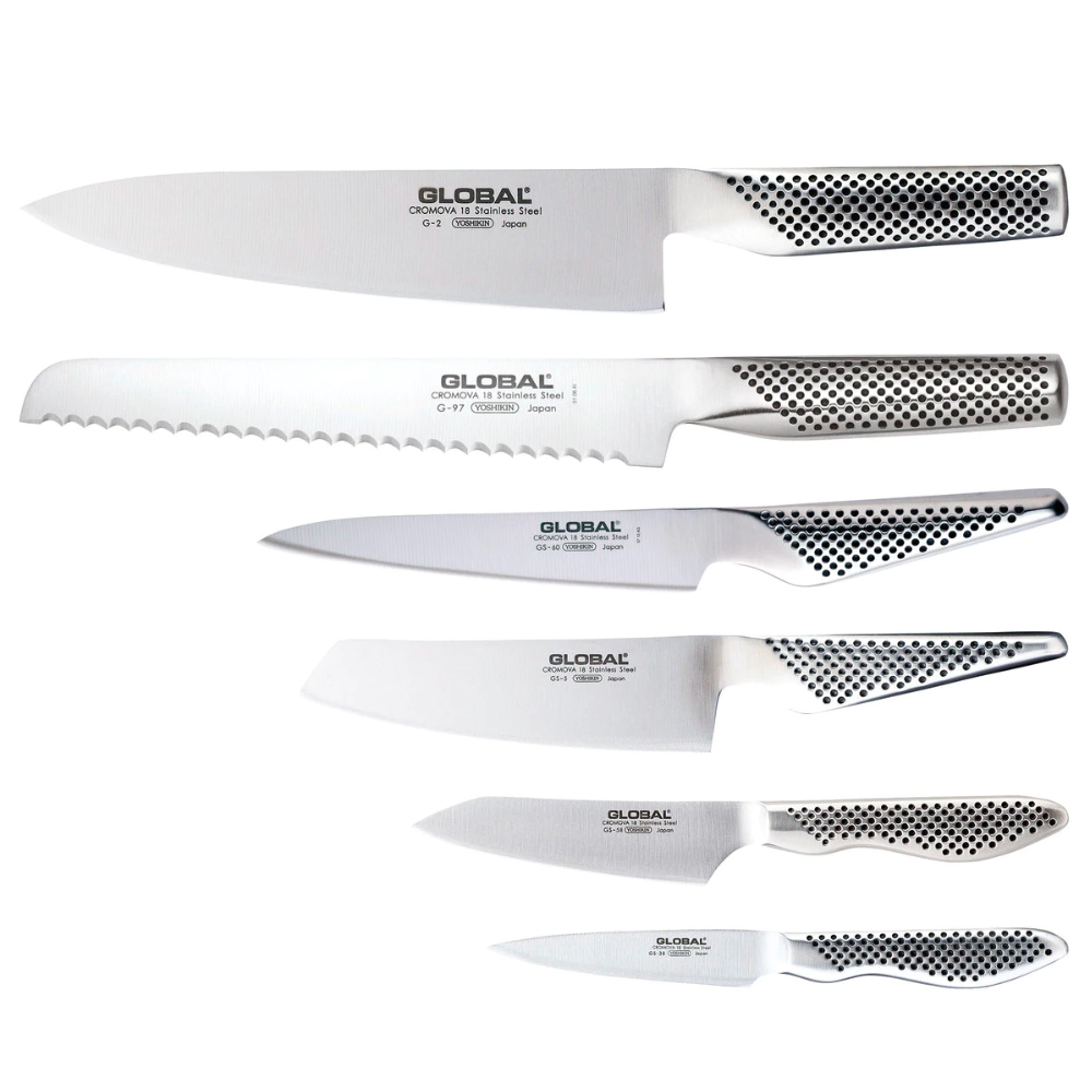 When purchasing any GLOBAL knife block set, we strongly recommend investing in a ceramic water sharpener or whetstone in order to maintain your knives and keep them razor sharp.
