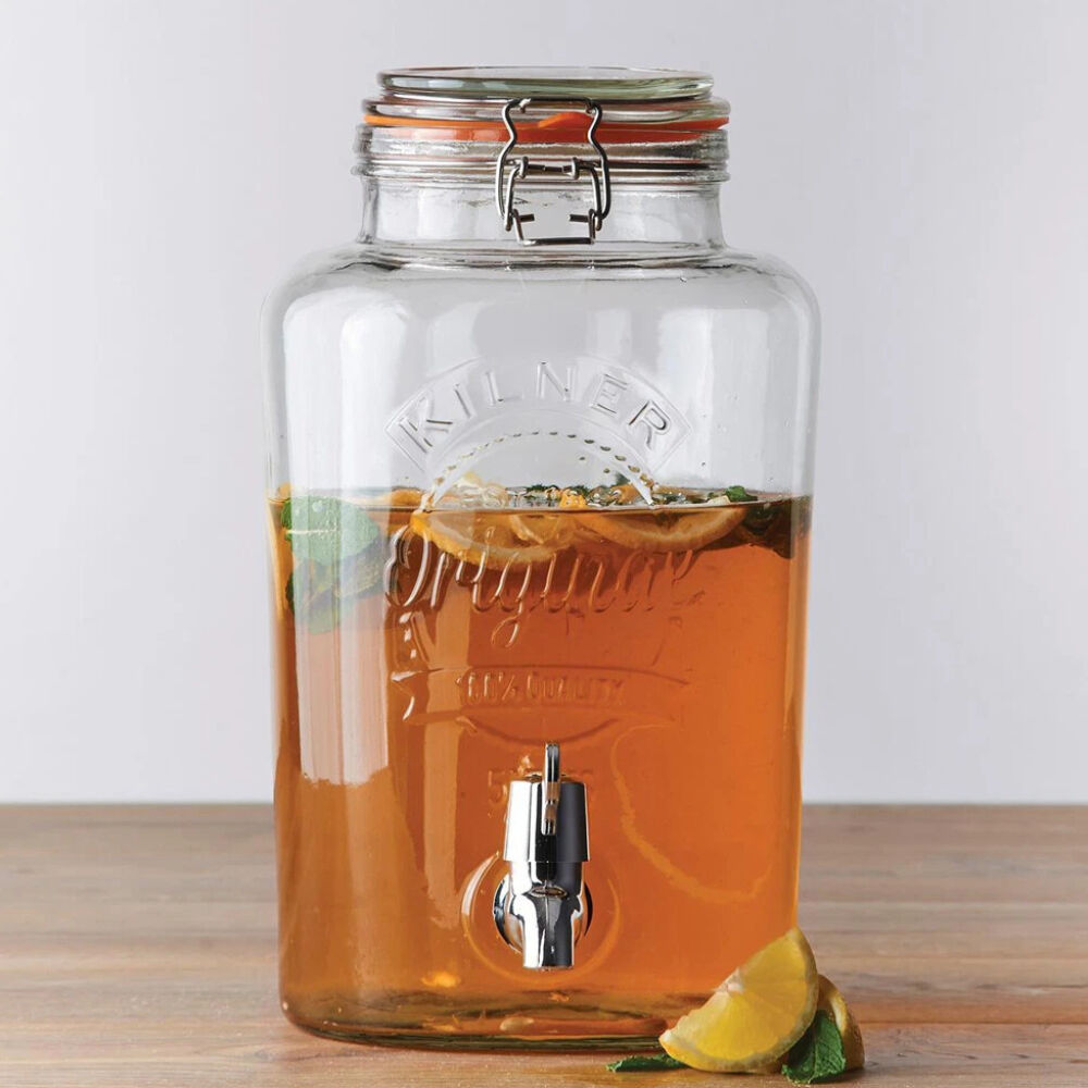 Serve your favourite beverages in style with the Kilner 5L Glass Round Drink Dispenser. Perfect for entertaining, this classic dispenser is ideal for water, juice, iced tea, or homemade cocktails. Made from durable glass, it features a secure clip-top lid to help keep contents fresh, while the integrated tap allows for easy, mess-free serving. A practical and stylish addition to any gathering, kitchen, or outdoor event.