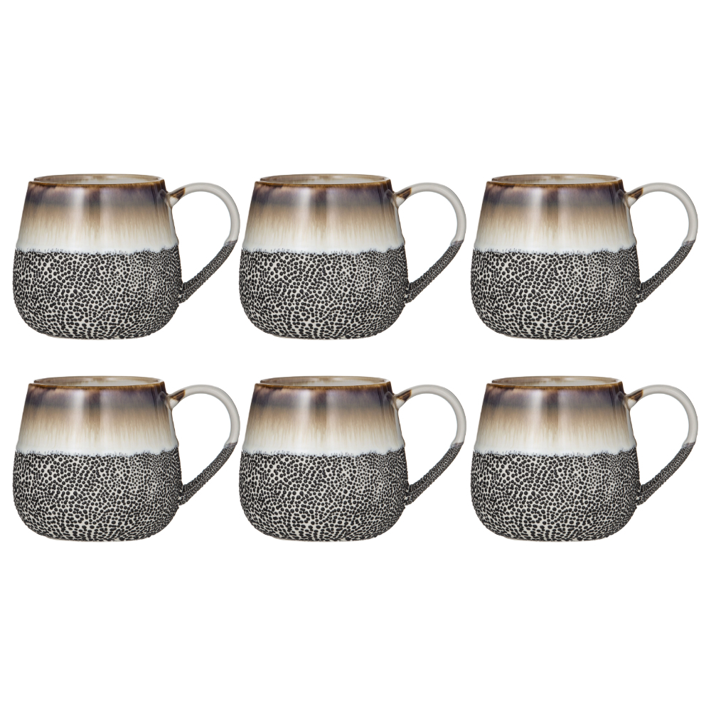 Leaf & Bean Roma Reactive Glaze 6 Piece Mug Set 500ml Mocca
