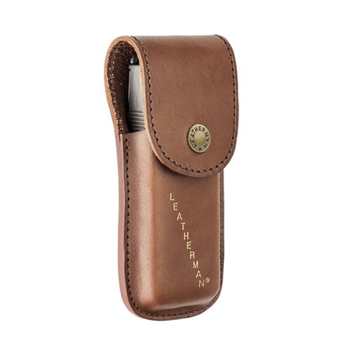 Leatherman's Heritage Sheaths are made in the USA from premium leather with heavy-duty stitching and a reinforced custom snap button that provides added durability and integrity. Finished with a foil stamped logo.