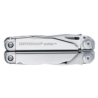 The Leatherman Surge is one of our two largest multi-tools; a real powerhouse, built with our largest pliers, longest multi-tool blades and easy-to-use locks. A unique blade exchanger, large and small bit drivers and four outside-opening blades give you quick access to the tools you use most. The Surge was built for tough jobs and the hands that do them.