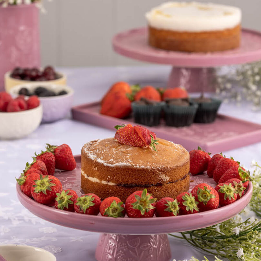 Showcase your bakes in style with the Mason Cash In The Meadow Pink Cake Stand. Made from durable stoneware, it features a soft pink glaze and embossed floral detailing inspired by spring meadows. Perfect for displaying cakes, tarts, or pastries with a touch of charm and elegance.