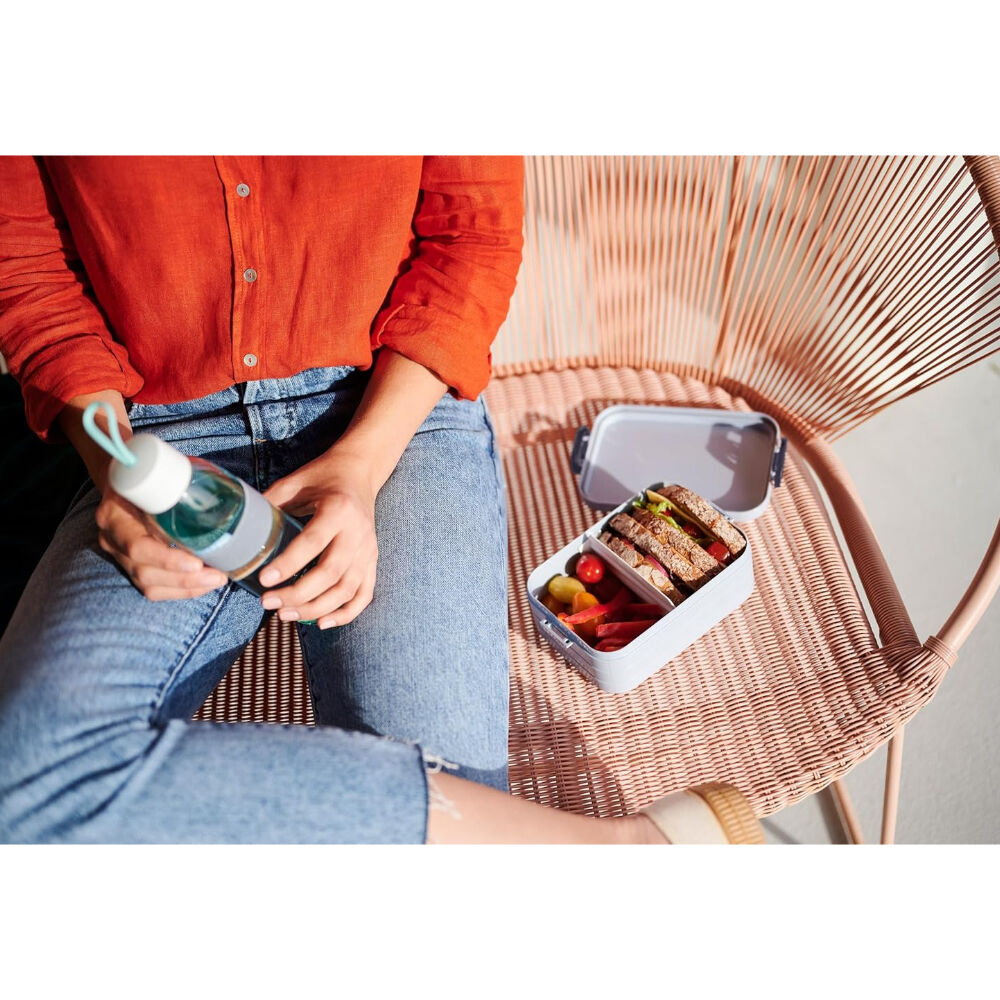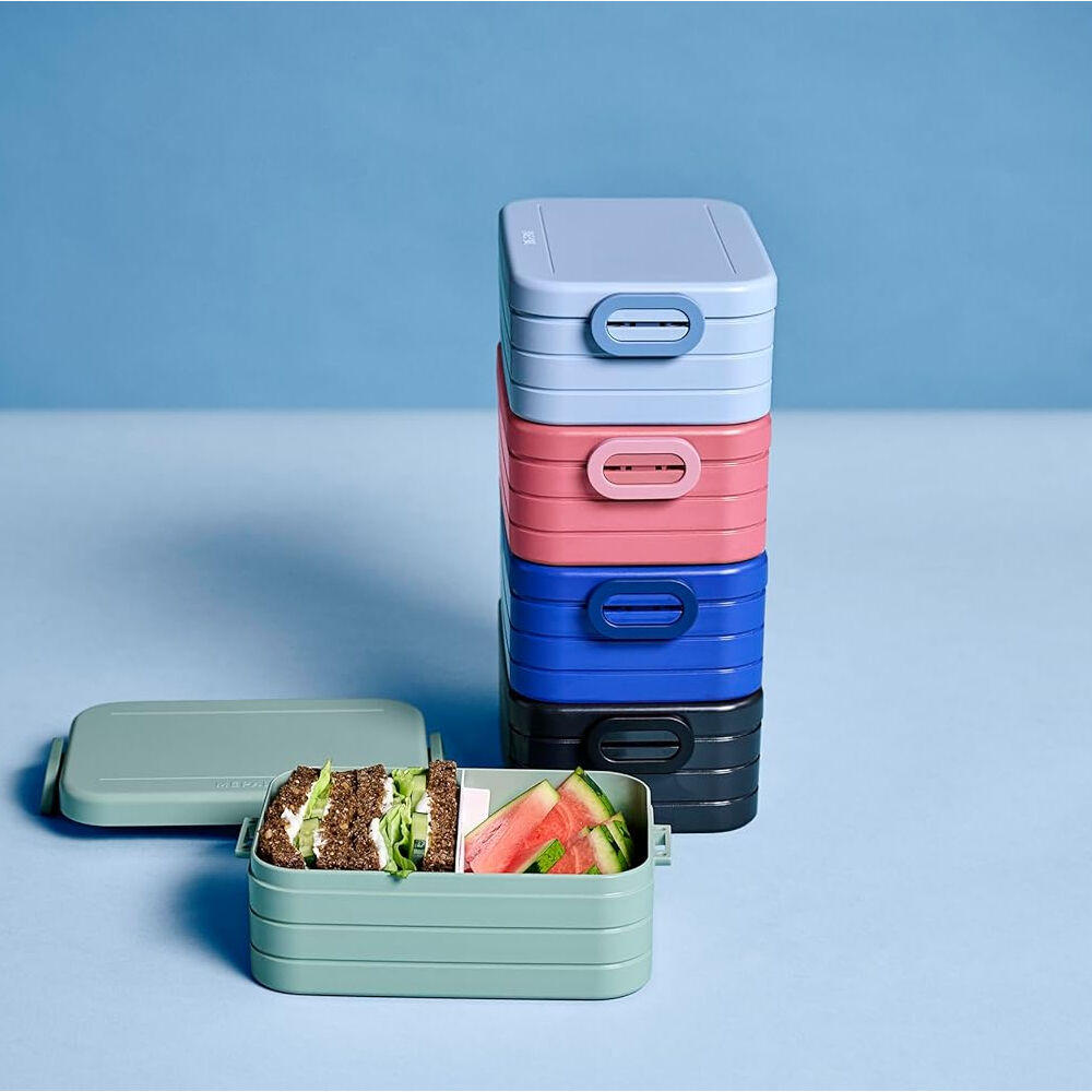 Upgrade your lunch routine with the Mepal Take a Break Lunch Box in Nordic blue. This midi box effortlessly fits two generously filled sandwiches, keeping them fresh with its airtight seal and practical clip closure. The added divider enhances organization, while the robust design ensures durability. After a satisfying meal, enjoy easy cleanup as this lunch box is dishwasher-friendly. Redefine your lunch experience with the perfect blend of style and functionality in the Take a Break midi lunch box.
