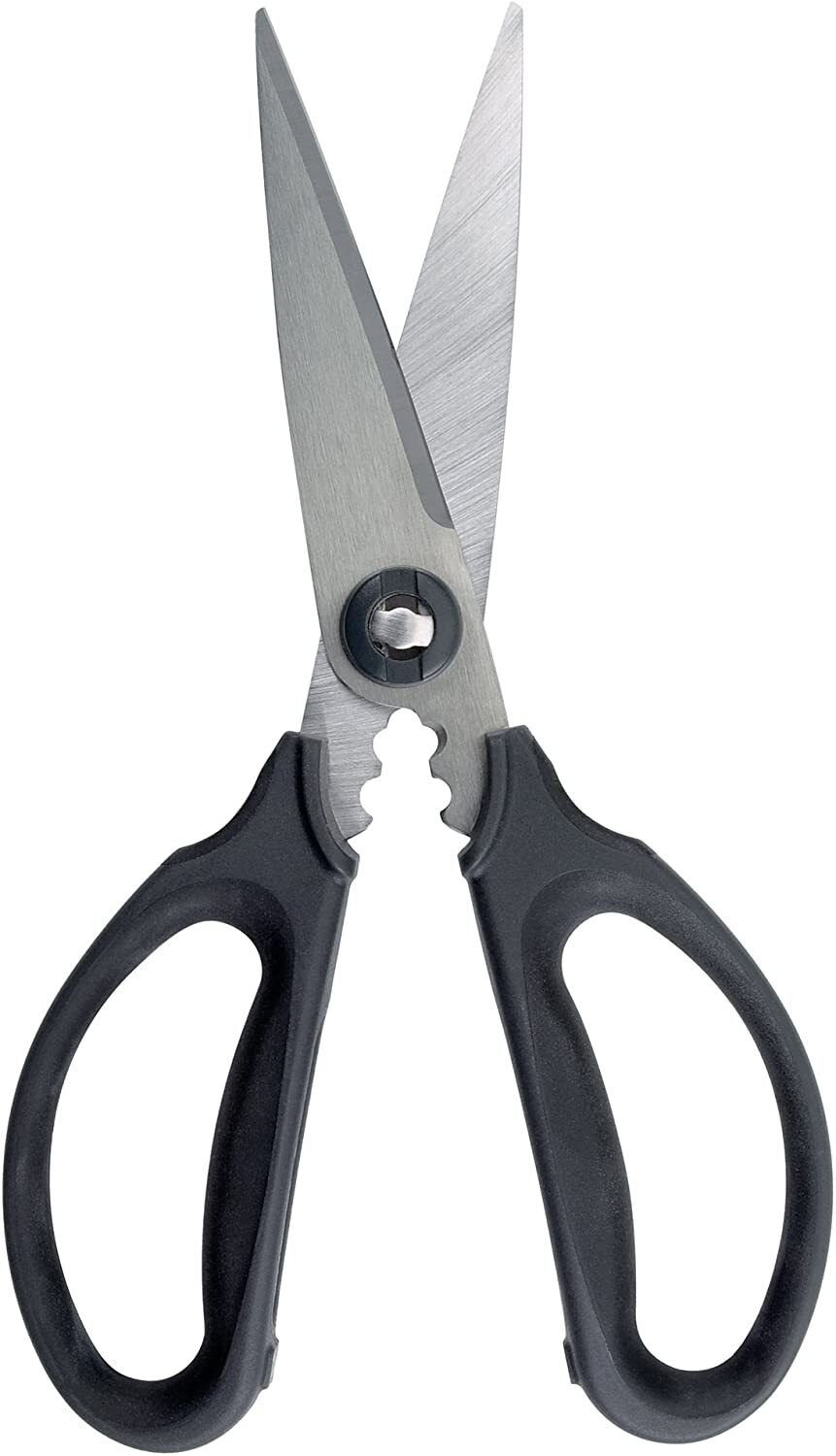 The Oxo Good Grips Kitchen and Herb Scissors are the all-purpose scissors that are going to make your life much easier in the kitchen. The tough stainless steel blades have a micro-serrated edge that securely grips things like cardboard, meat and vegetables to prevent slipping, before cleanly cutting through.