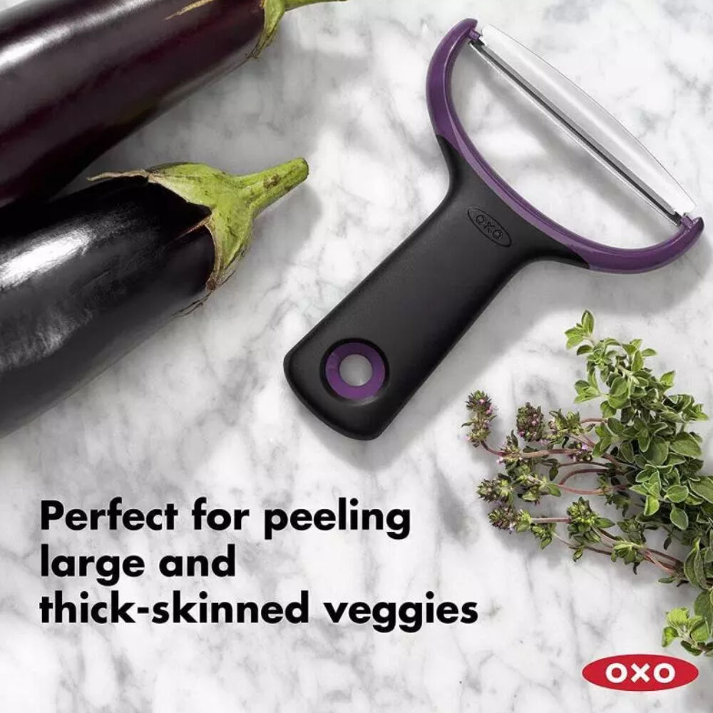 Make quick work of large or thick-skinned vegetables with the OXO Good Grips Large Vegetable Prep Peeler. Its wide stainless steel Y-shaped blade easily handles tough skins like squash, eggplant, and cabbage, while the ergonomic non-slip handle ensures comfort and control during longer prep sessions.