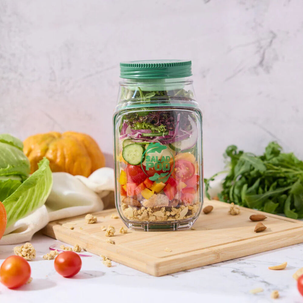 The Salad Pod is a leakproof, portable container with the ability to do vertical layers to keep your salad fresh and crisp. Its ergonomic design lets you easily mix and enjoy meals on the go, with a convenient front hatch that transforms it into a salad bowl.