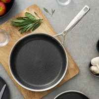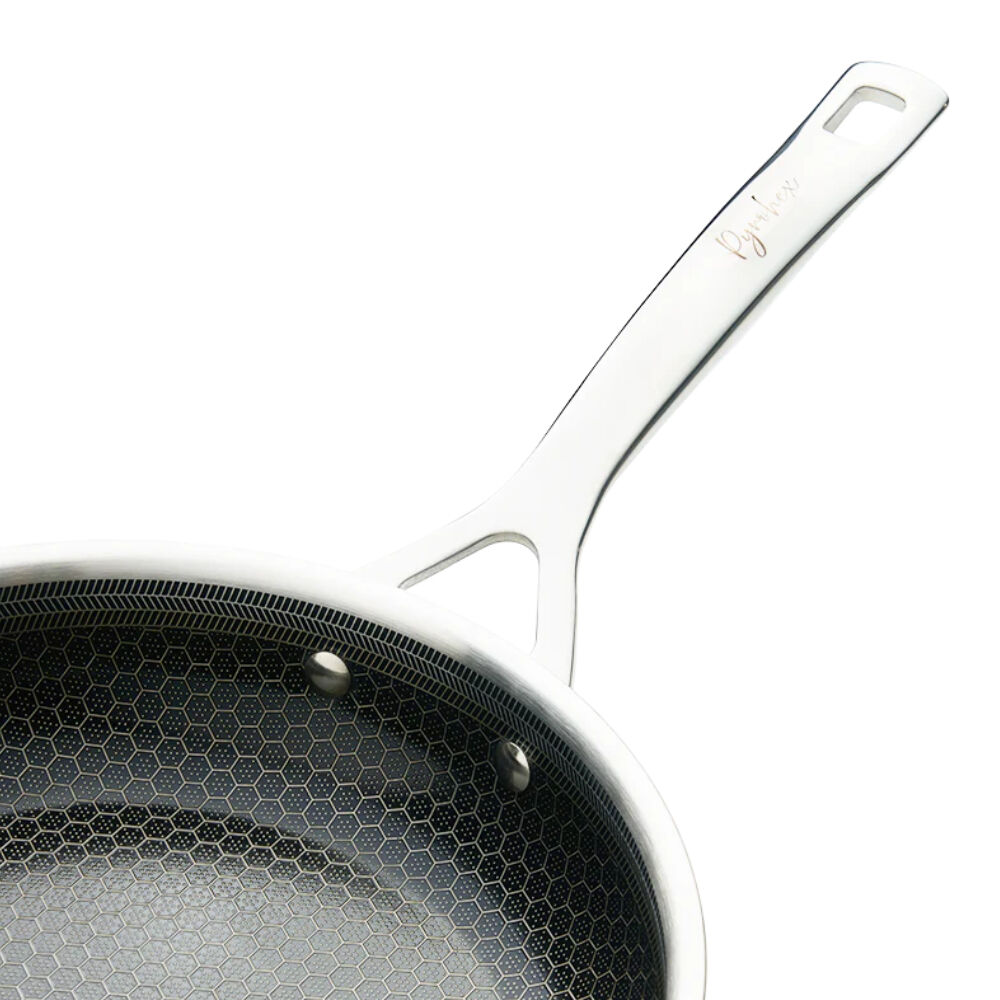 The Pyrolux Pyrohex FryPan delivers the perfect balance of durability and non-stick performance. With its tri-ply stainless steel construction and advanced ceramic coating, this fry pan ensures quick, even heating and effortless food release. The stainless steel honeycomb mesh protects the non-stick surface, making it scratch-resistant and safe to use with metal utensils.
