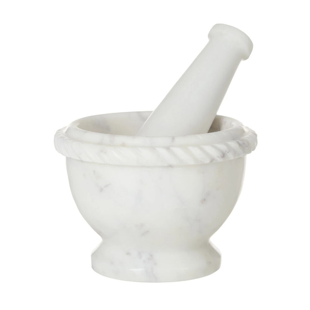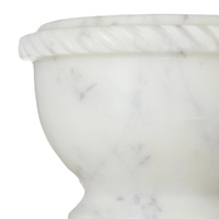 The Society Home Margot Marble Mortar & Pestle combines elegance with practicality, making it a stylish addition to any kitchen. Crafted from durable marble with a classic white finish, it features a decorative scalloped edge that adds a refined, heritage-inspired look while remaining highly functional for everyday food preparation.