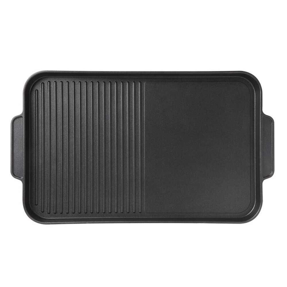 Grill up a feast on our giant grill plate. 44cm x 27cm cooking area spanning across two burners. Ribbed and flat cooking surfaces for different foods. The specialised dual induction plates will delight owners of induction cooktops.