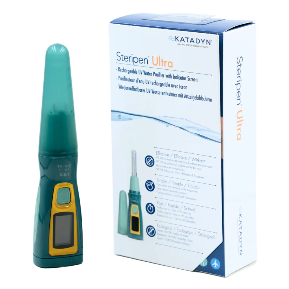 The Katadyn Steripen Ultra is a premium USB-rechargeable UV-C water purifier built for outdoor, travel, and emergency applications. It eliminates harmful microorganisms including bacteria, protozoa, and viruses without chemicals or filtration. Featuring a clear OLED display for status and battery indication, the Ultra provides easy operation and reliable performance for high-usage customers. It’s ideal for professional users seeking compact, rechargeable purification in the field.