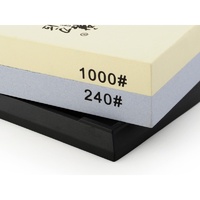 Quality combination sharpening stone with two rough grits. Stone comes with rubber anti-slip base and can be used with water or oil. Taidea sharpening stones offer great price to performance ratio. Grit: 240/1000
