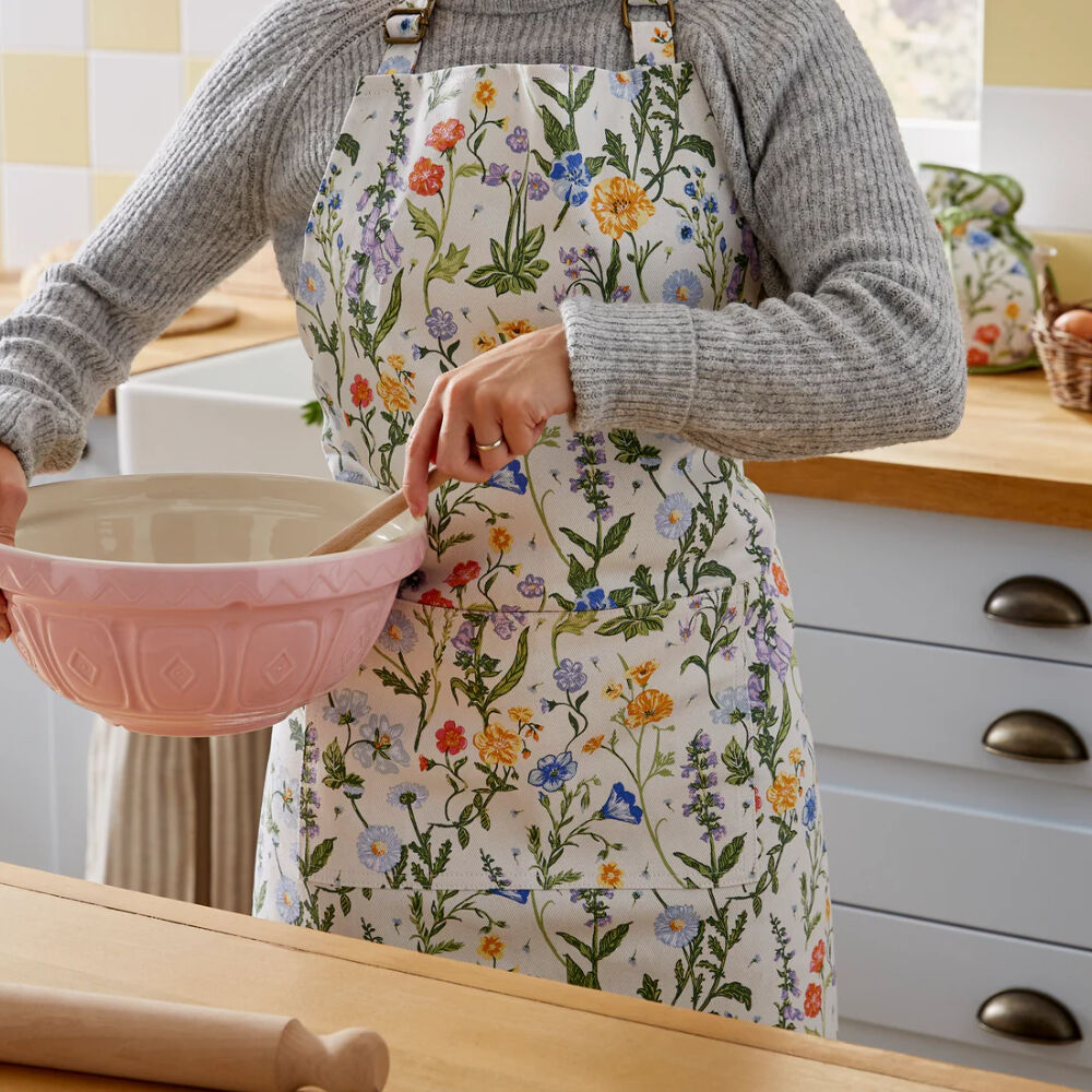 This Cottage Garden Apron adds elements of romance and beauty when entertaining friends and family around the BBQ! It features a beautiful pattern of wildflowers in different hues fluttering in the wind.