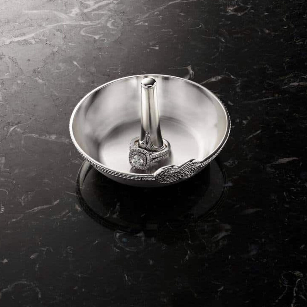 A refined and sentimental piece that combines elegant design with symbolic meaning — perfect for holding your rings while expressing timeless affection.