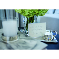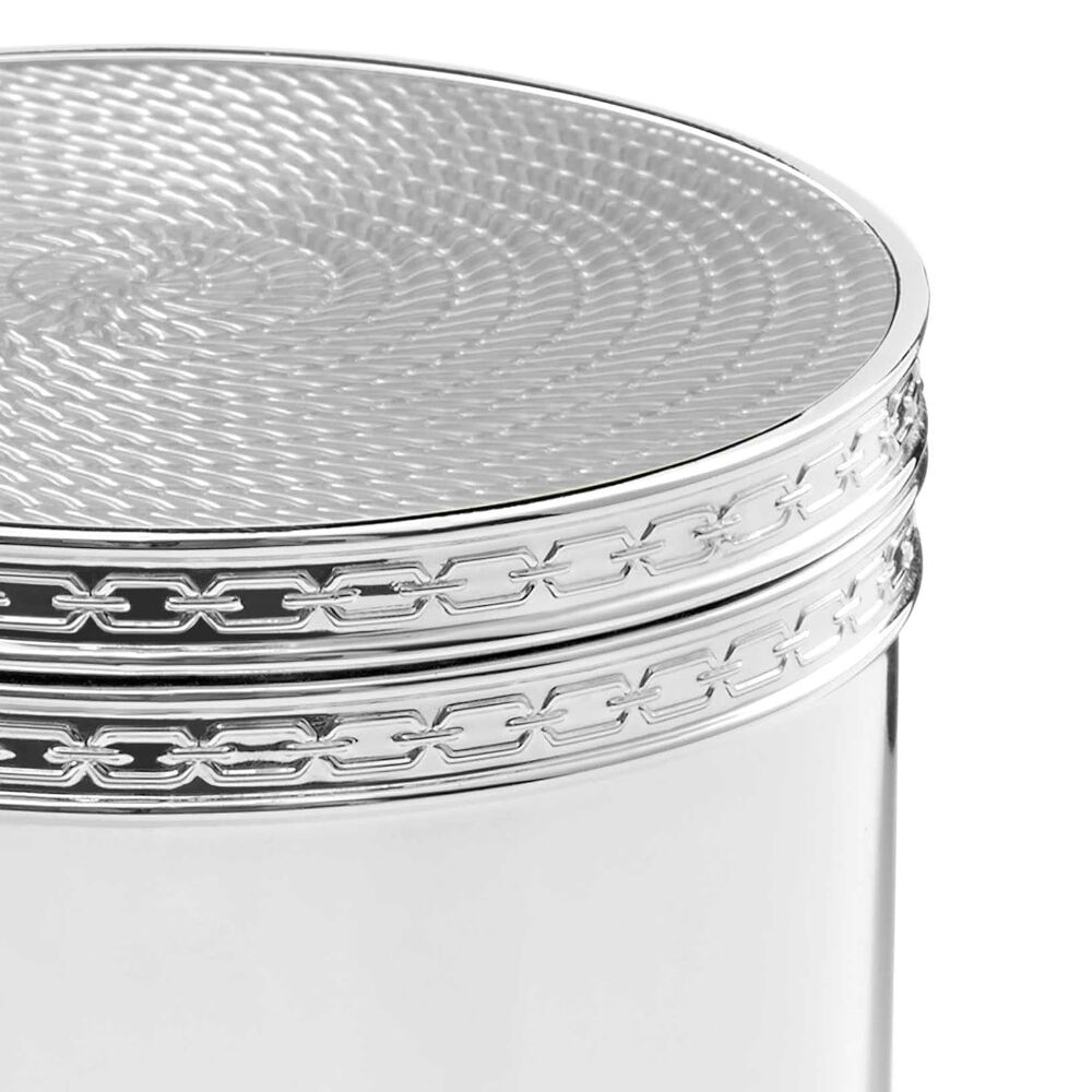 The Vera Wang Wedgwood With Love Nouveau Silver Gift Box 8 cm is beautifully crafted from silver-plated metal with subtle enamel detailing. Featuring Vera Wang’s signature interlocking ring motif symbolising eternal love and unity, this elegant piece is perfect for holding jewellery, keepsakes or small treasures.