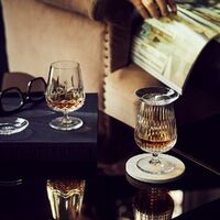 The Lismore Snifter and Tasting Cap balances an expanded nosing experience with an easy-sipping shape. The tasting cap complements the glass, trapping aroma within and allowing it to intensify and develop between sips. The snifter and cap, pair well with aged spirits, revealing the hidden depths of your favorite rums, whiskies and cognacs.