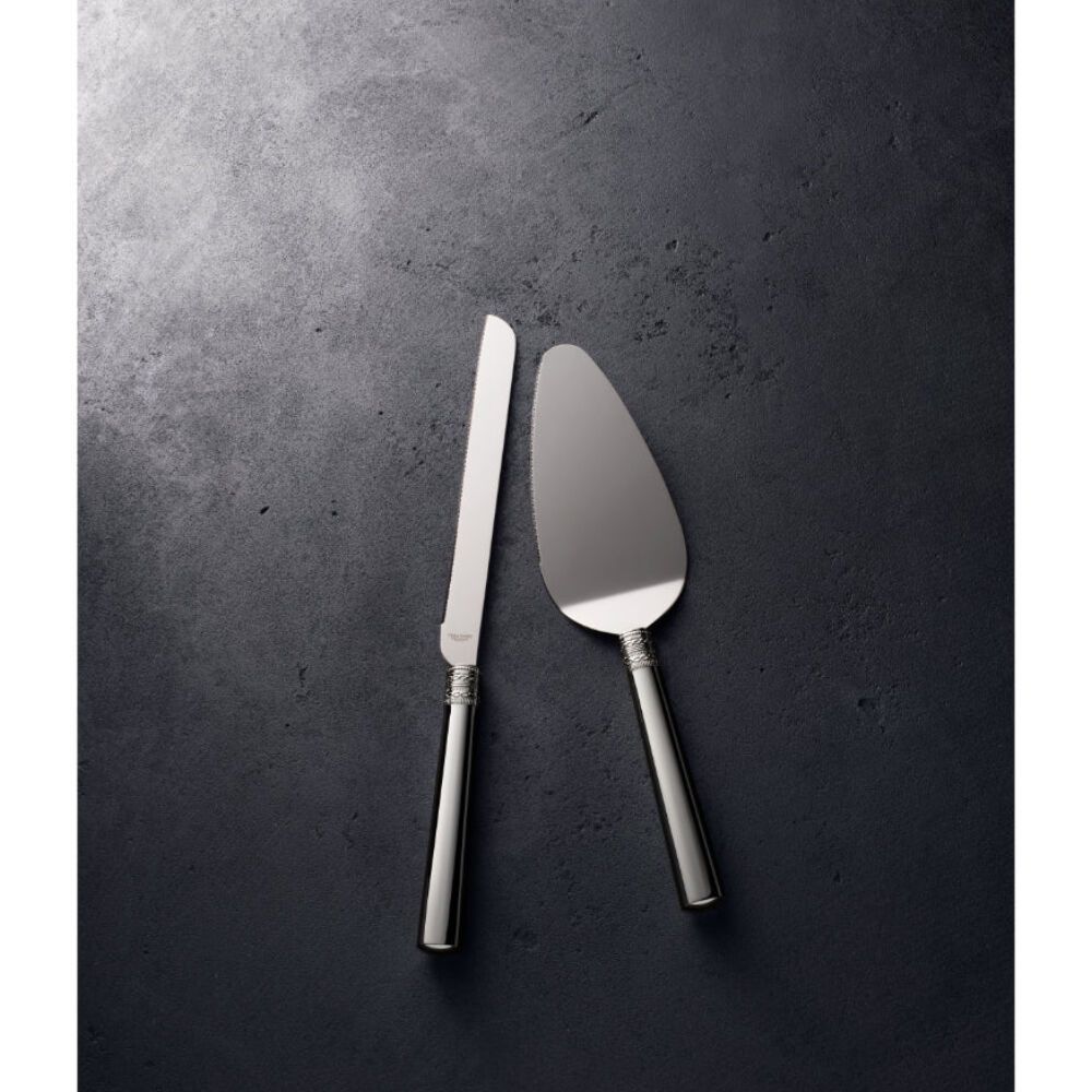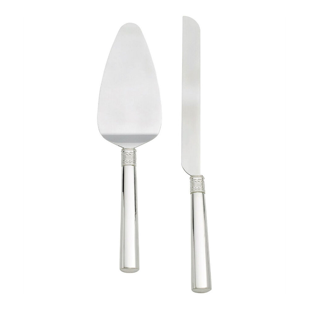 The Wedgwood Vera Wang With Love Silver Giftware Cake & Trowel Set is crafted from silver-plated metal and features a motif of vintage-inspired bands, bringing timeless elegance to special occasions.