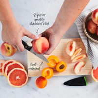 The Wiltshire Staysharp Triple Rivet Paring Knife 9cm is designed for precision and ease in everyday food preparation. Its compact size and ergonomic handle make it ideal for tasks like peeling, coring, and detailed cutting. The integrated self-sharpening system ensures the blade stays sharp with every use, eliminating the need for manual sharpening.